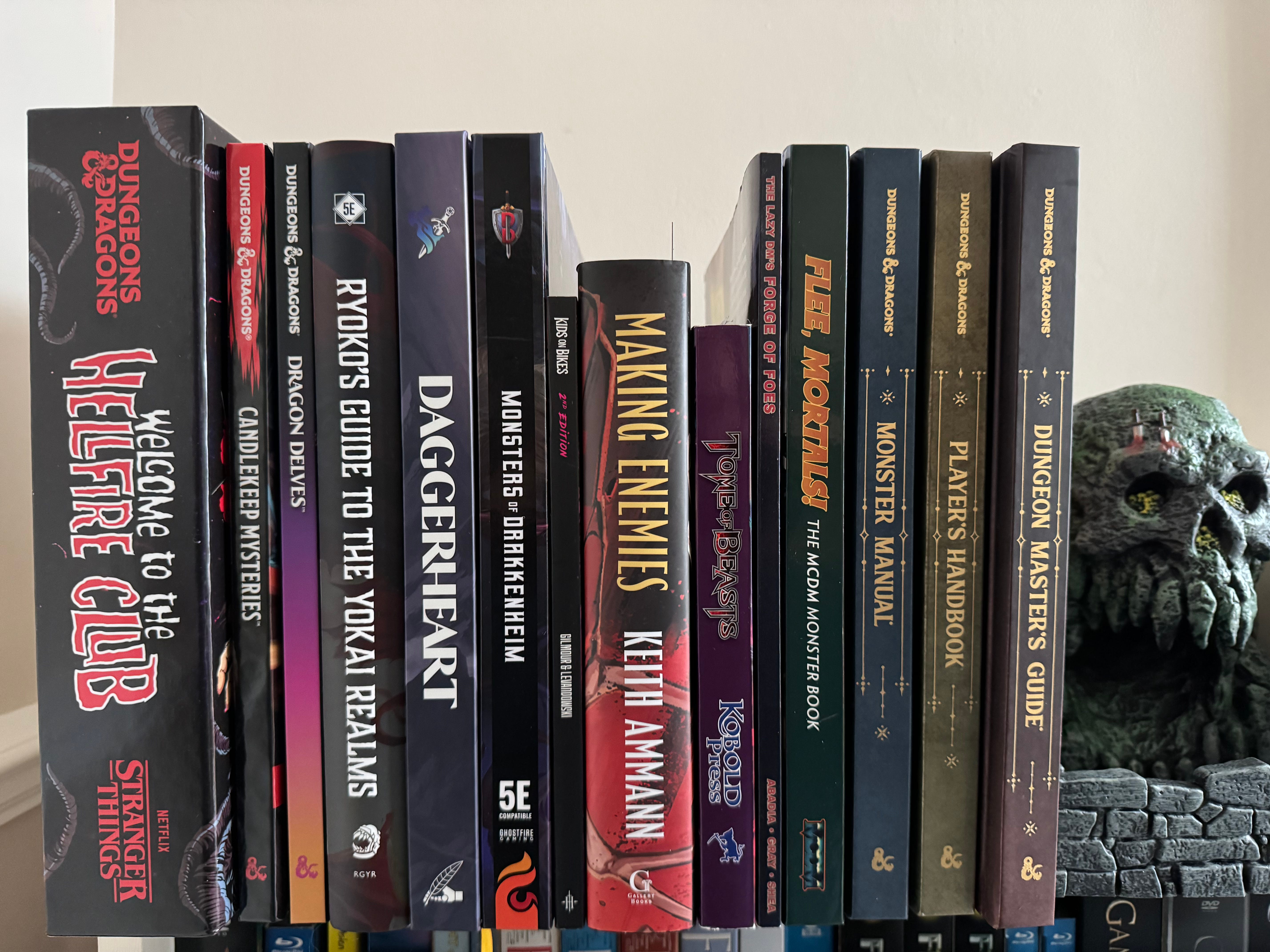 Here lies every ttrpg book I got excited about reading but am yet to break the spine.